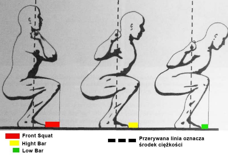 Nie ma tutaj też żadnej wielkiej filozofii. Trening na pośladki powinien zawsze być wykonywany przy wyprostowanych plecach, co jest warunkiem koniecznym, odpowiedniego rozkładu sił. Ważny jest odpowiedni rozkład nóg. Stopy powinny być rozstawione na szerokość bioder, a jeśli jest to dla nas z różnych przyczyn za mało, powinny być na szerokości barków. Na pewno nie szerzej. Istotne są tutaj kolana. W trakcie pracy nie powinny nawet na moment wychodzić poza obrys stóp, ale to jest dość luźne założenie, ponieważ osoby posiadające golenie o stosunkowo dużych rozmiarach nie będą mogły się zastosować do tego zalecenia. Koniecznie trzeba też schodzić do odpowiedniej wysokości. Przysiad nie polega na tym, by zejść jak najniżej. Naszym celem są ćwiczenia na pośladki, a nie ud, które w najniższym poziomie przejmują dużą część pracy, a zejście poniżej niego już w zasadzie tylko je obciąża. W najniższej części prawidłowego przysiadu nasze łydki powinny tworzyć z udami kąt około dziewięćdziesięciu stopni, ewentualnie trochę mniejszy, ale na pewno nie mniejszy niż sześćdziesiąt stopni.